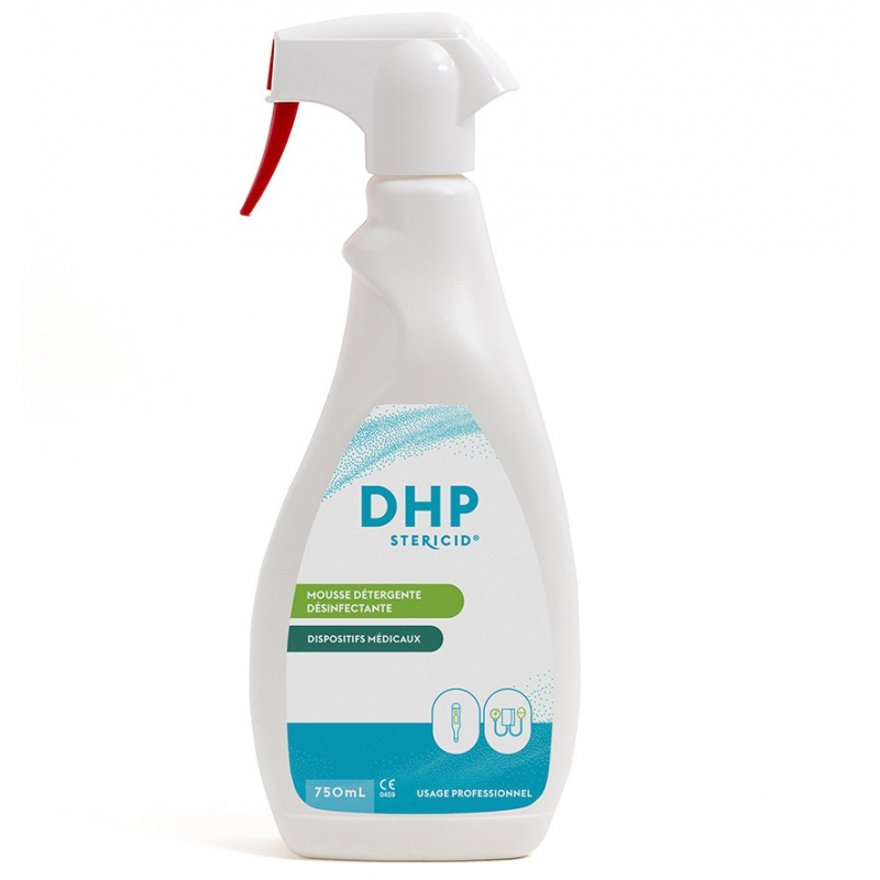 Le spray DHP est une solution liquide moussante, prête à l’emploi, classée comme dispositif médical de classe IIb.
