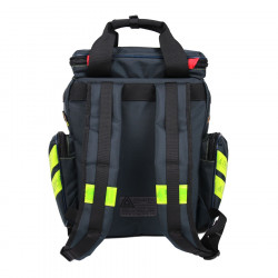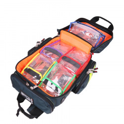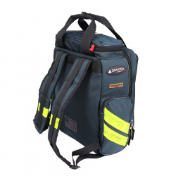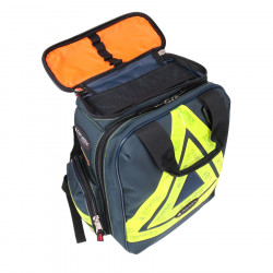 Ce sac à dos de secours est livré avec 5 pochettes transparentes amovibles Cristal (4 petites et 1 moyenne). Portage au dos ou à la main, il est fabriqué en tissu polyamide 1680D, enduit et imperméable. 3 poches fixes extérieures (avec filets intérieurs et pontets élastiques). Coque en mousse haute densité et bandes rétro-réfléchissantes. Dimensions: 47 x 45 x 20 cm. Volume 37 litres. Poids: 1.95 Kg.